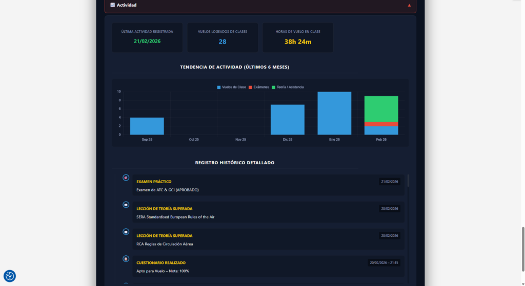 Acceso directo al control y registro de vuelos del escuadrón para todas nuestras actividades.